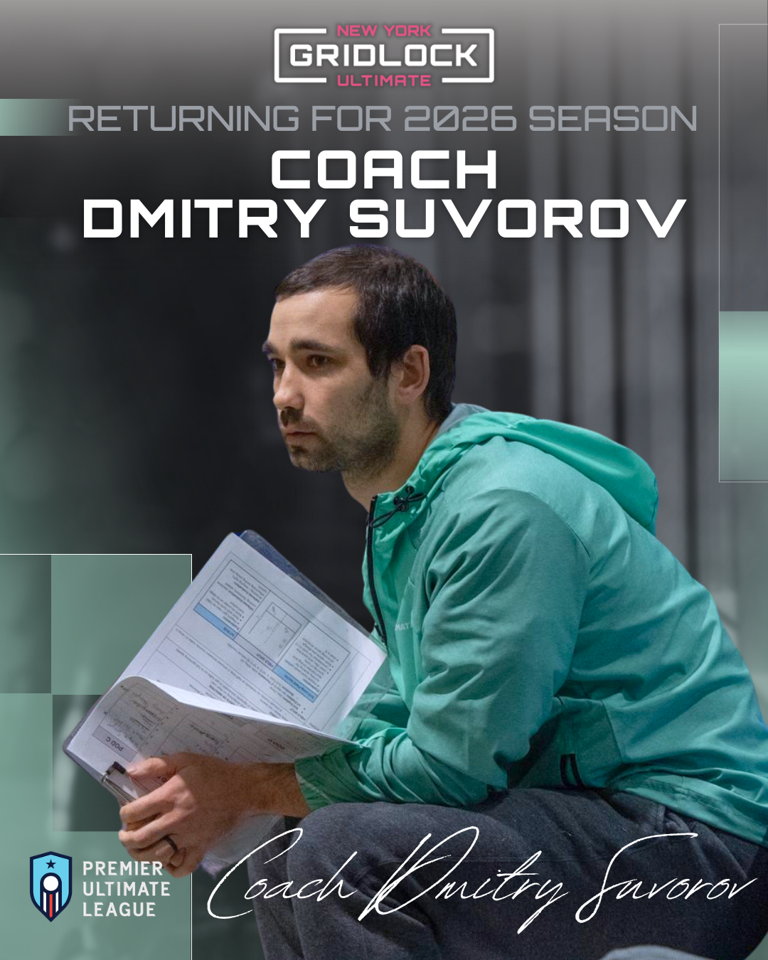 With nearly 15 years in the sport and coaching since 2019, Dmitry brings a sharp strategic mind and deep film experience shaped by years playing college, mixed, open club, and in the UFA. Most recently, he’s coached NY BENT at the club level and spent the past couple of seasons on the Gridlock sidelines.